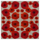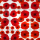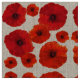 Red poppies pattern fabric. Rustic linen material with all-over bright poppy design.