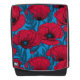 Red poppy garden on blue backpack