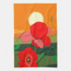 Red Poppy Meadow at Sunset Tea Towel