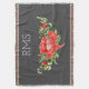 Red Poppy on Grey Customisable Monogram Throw Blanket