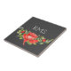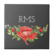 Stylish design features red poppy bouquet on charcoal grey background with customisable monogram or name in modern font