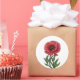HAnd painted botanical illustration of a red poppy flower, watercolor and ink on paper