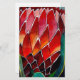 with original art design from watercolour painting by Sacha Grossel of large, red Protea flower, naïve to South Africa and Australia. Bright and colourful design with red, orange and green.