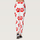 Cute red puppy paws pattern on white leggings