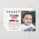 Celebrate the speed and excitement of your little one's race car-themed birthday party with this vibrant and fun Red Race Car Birthday Party Photo Thank You Card. Featuring bold designs with racing elements like chequerboard flags and speedy race cars, this card is the perfect way to thank your guests for joining the fun. Whether it’s for your "Need Four Speed" party, a "First Lap Around the Track" celebration, or a "Two Fast, Can't Catch Me" birthday, this card adds the perfect finishing touch. Let your guests know how much their presence meant with a stylish, race car-inspired thank you card! Order now and express your gratitude in high speed!