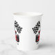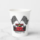 Red Race Car and Chequered Flag Design Paper Cup, with customisable text.