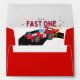 What a fun way to celebrate your child's 3rd birthday! This envelope features a red race car driving across a racetrack, with the number 1 written on the race car. See the matching invitation or use this envelope to send a birthday greeting card.