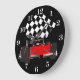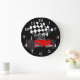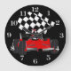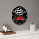 * Race Car with a winning checkered flag wall clock is available in round or square shape options.