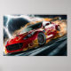 Red Racing Car with Flame Pattern Drifting Hard #1 Poster