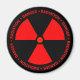 Danger - Radiation - red lettering and radiation symbol with a black background.