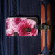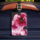 A digital painting of a ranunculus flower is printed on the front of the luggage tag. Please using the editing tool and change the text on the back of the luggage tag to your contact information.