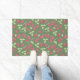 Charming painted rosy red raspberries and leaves twining over a dark green floor mat.