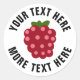 Red raspberry fruit custom round jam stickers and seals. Personalise with your own label text and background colour. Great for jelly or jam pots and other food preserves.