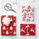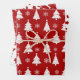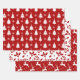 Red Reindeer, Christmas Trees and Holly Patterns Wrapping Paper Sheet