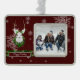 Celebrate the season in style with this Red Reindeer Framed Ornament, featuring a graceful white reindeer surrounded by a festive Christmas wreath adorned with holly berries and delicate white snowflakes. Your family photo is beautifully accented with elegant script that reads Happy Holidays, creating a timeless Christmas photo keepsake in a charming winter holiday theme perfect for your festive décor.