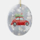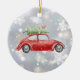 Red vintage beetle with Christmas Tree Christmas Ornament. A cute little red retro car laden with a Christmas tree. What a nice addition to your holiday decor and Christmas decorations. Sweet stocking stuffer too!