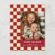 Red Retro Groovy Chequered Happy Holidays Photo Holiday Card