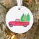 Red retro Pickup Truck with trees, hand painted watercolor.