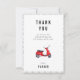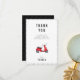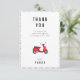Cute watercolor red retro scooter theme, birthday party flat thank you card.