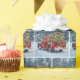 Red Retro Truck With Christmas Tree In Snowflakes Wrapping Paper
