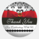 RED RIBBON BLACK & WHITE DAMASK CLASSIC ROUND STICKER