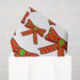 Red ribbons with green dog paw prints pattern. Custom gift wrapping tissue paper for Christmas decor.
