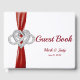 Elegant red ribbon and infinity heart decorate this guestbook. Wedding guest books are fun for both the couple and their celebrants. Invite attendees to leave you well-wishes at your reception, and you're guaranteed to have a keepsake to look back on for years to come. Plus, your guests will get to leave their mark on your event, not to mention put in writing whatever they didn't have a chance to express in person on the big day. Personalise the book by changing the text in the fields provided. You can change font style, size, and colour.