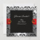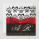 RED RIBBON RUBY WHITE BLACK DAMASK MONOGRAM INVITATION
