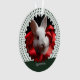 White bunny with red ribbon on white holiday  ornament filled with  green Christmas trees. Name of your bunny around your pet rabbit's photo.