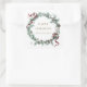 Red Ribbon Winter Greenery Monogram Square Sticker