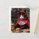 Red Riding Hood Cat Eats Cheesburger and Fries Postcard