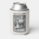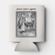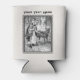 This can or bottle cooler has a black and white illustration of Little Red Riding hood in the forest among trees with flowers talking to the wolf in an ornate black frame. Customise your text on the front and back with the template.