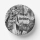 This paper bowl has a black and white illustration of Little Red Riding hood talking to the wolf in the forest wearing her cape holding her basket. Customise the Happy Birthday text with the template.