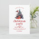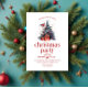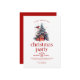 A Christmas-themed party invite featuring Christmas trees with presents and a red robin watercolor. Festive party invitation for you to invite your guests for a holiday party.