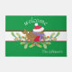 For the winter holidays, this doormat has a Red Robin, with a purple scarf and red hat. The Robin is rest on green eucalyptus branches with red berries. All text can be customised.
