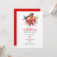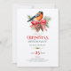 Colorful Christmas ornament composition with red robin and pinecones Christmas diner invitation template.