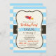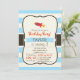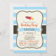 Red Rocket Space Ship; Light Blue Stripes Invitation