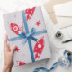 This pattern-based wrapping paper features a childish illustration of red space rockets and stars. This is a great choice for boys or space enthusiast kids of all genders and ages.
