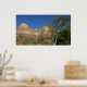 The red rocks at Zion National Park are not as famous as the cliffs at Bryce Canyon, but they are related. Here's a nature scene showing the red rocks of Zion National Park framed by trees and contrasted by bright blue sky. This photo is also featured as the widescreen wallpaper "Red Rocks at Zion" from the National Parks section of MLeWallpapers.com. Check out our store for more landscape photos from Zion National Park and other famous US National Parks.