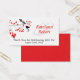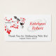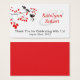 Use this set of business cards with personalisation as tags for your wedding favours to thank your guest for attending - simply punch a hole in the end and attach to your favours with matching ribbon. It is an elegant and romantic design features two black birds in a delicate tree branch with red leaves. The Bride & Groom's first names are to the right and written in red ink to match the leaves. Along the botton edge are the words 'thank you for celebrating with us' and the wedding date. The reverse side is a solid red to match.