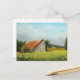This postcard features an original pastel painting of a sturdy red-roofed barn in a sunny meadow by Jayne Wilson.