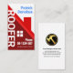 A simple negative space design where your business name "ROOFER" from the red rooftop blends into the white space above. Your prestigious name is over at the top corner with the contact details and a slogan caption option near the base of the card. ; You can change the caption remarks to both the business name and the slogan to suit your own service needs.