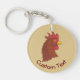 Red rooster's head illustration. Custom background colour. Custom text on both sides.