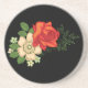 Red Rose and Daisies Black Background Coaster