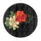 Beautiful and colourful bouquet of flowers, red rose and white daisies on black background.