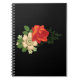 Beautiful and colourful bouquet of flowers, red rose and white daisies on black background.