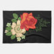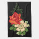 Red Rose and Daisies Black Background Tea Towel