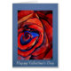 Perfect for Valentine's Day with original art design from watercolour painting by Sacha Grossel of large, close focus, macro style red rose with blue highlights. This traditional English flower with crimson petals has a bright, intense colour design that conveys the abstraction of the botanical form and themes of love and passion.