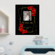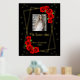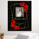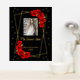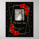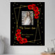Gold and black Quinceañera with vibrant traditional red roses and classic script typography. Photo template via Pixabay licensed under CC0 and must be replaced with your own photo