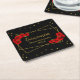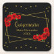 Red Rose Black and Gold Quinceañera Square Paper Coaster